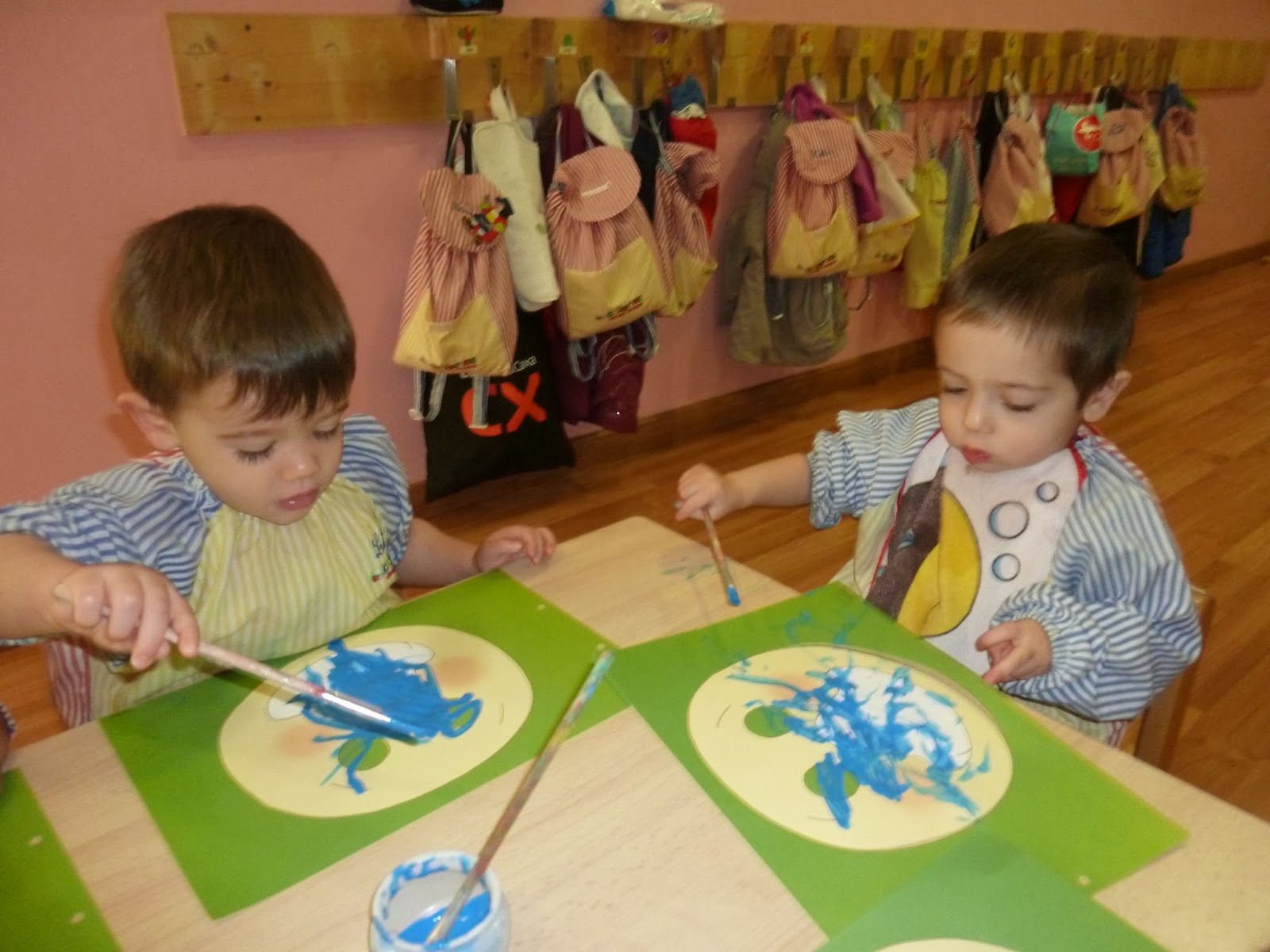 La classe groga avui han pintat amb pintura. Estan treballant l'hivern i han pintat un guant. Mireu que bé que s'ho han passat.
